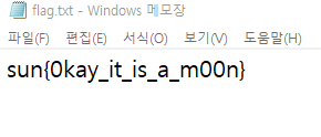 플래그 값 : sun{0kay_it_is_a_m00n}
