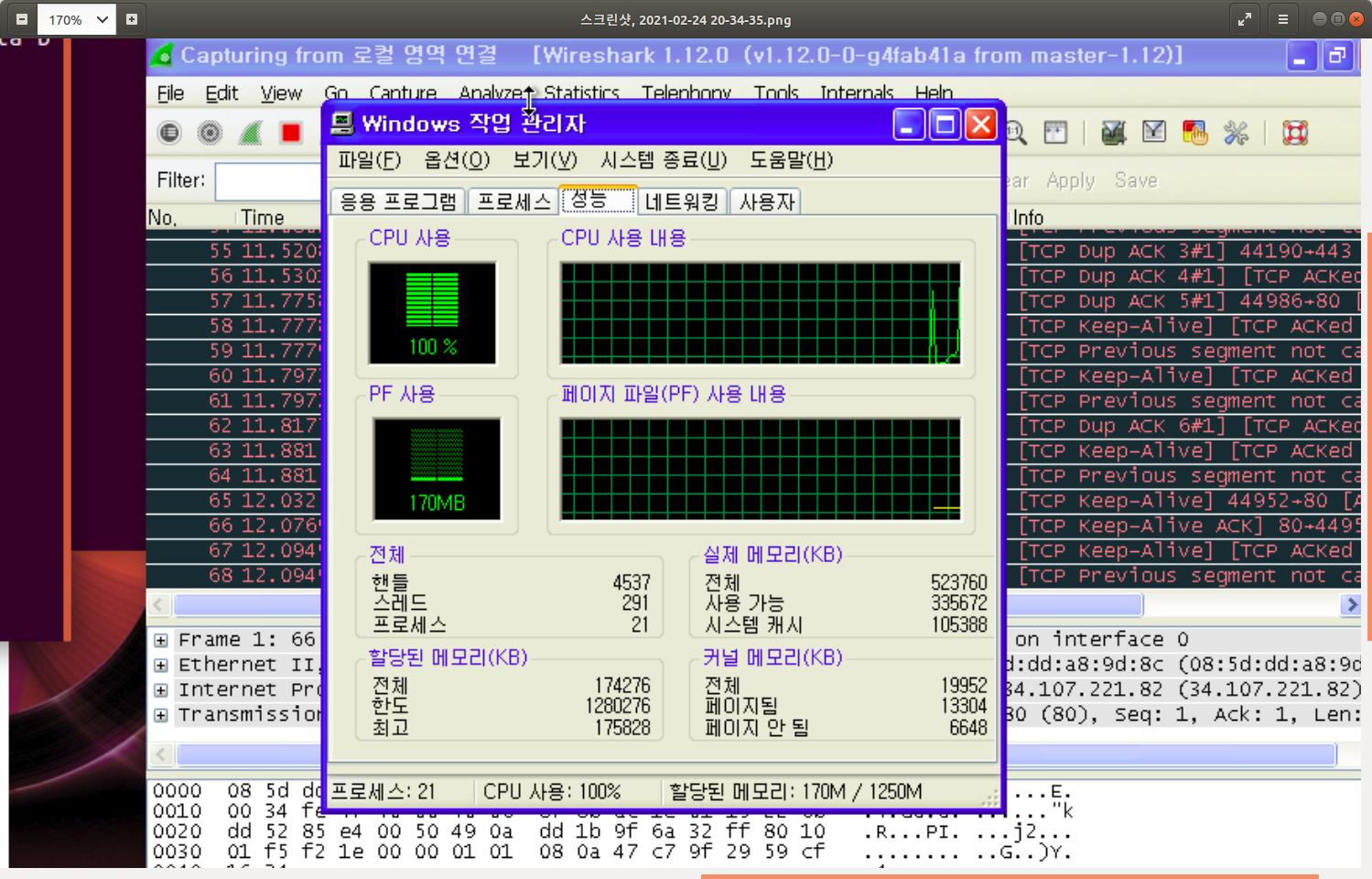 이제 피해자PC에서는 쪼개져 도착한 패킷들을 재조합하는 과정에서 부하가 발생하는 것이다.
