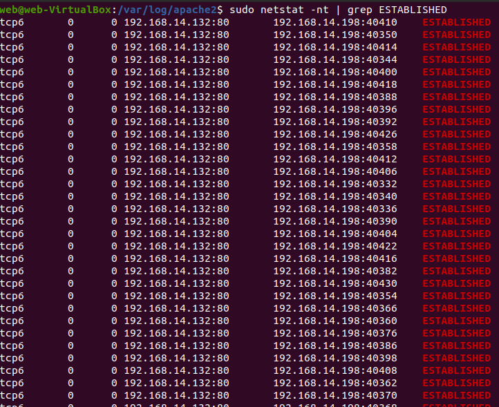 피해자 : 우분투 apache2 웹(192.168.14.132)