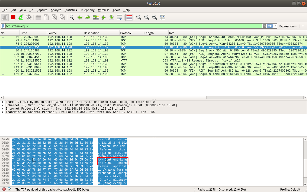 Content-Length를 보게되면 4096의 크기인 것을 볼 수 있다.