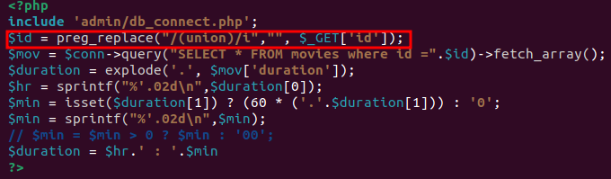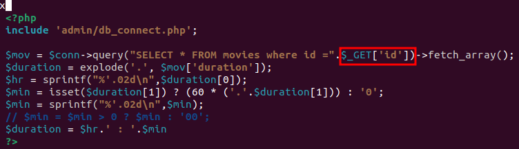 취약점 발생 부분은 $id에 값을 검증 없이 입력을 받고 query를 DB에 전달을 한다. 검증 없이 입력을 받아 sql의 함수 등을
