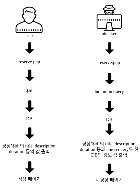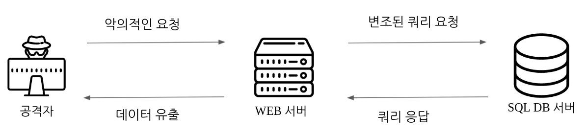 공격자의 비정상 query 요청에 DB에서 처리 후 결과를 공격자에게 전달합니다.